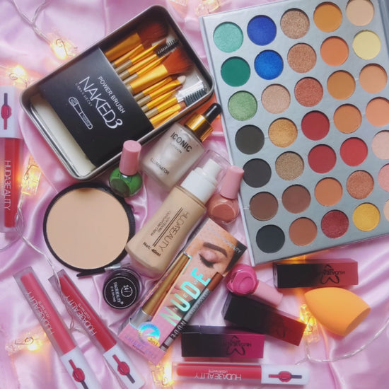 Mega makeup bundle Pakistan, Jaclyn eye palette Pakistan, Huda faux filter foundation, Huda lip gloss set, Iconic highlighter Pakistan, Naked brush set Pakistan, beauty blender price in Pakistan, bridal makeup set online, full makeup kit deal Pakistan, Dubai imported cosmetics.