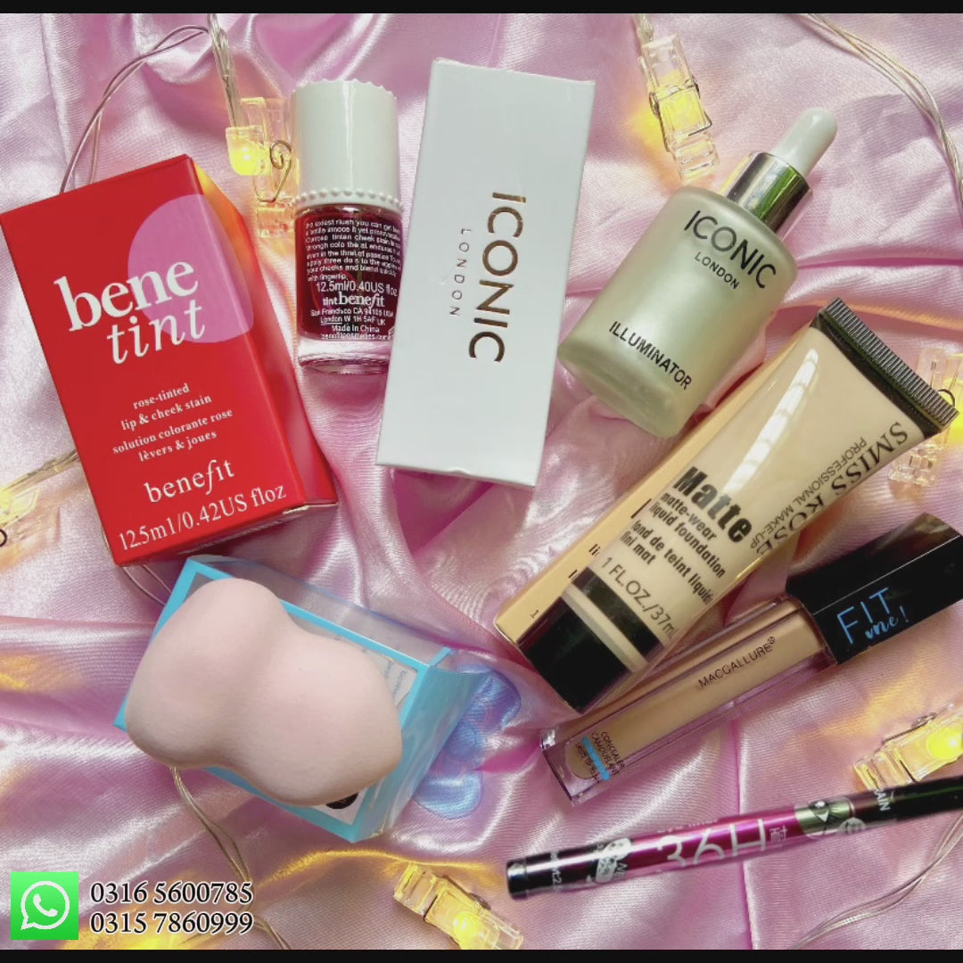 Achieve a flawless makeup look every day with this exclusive beauty kit, featuring Miss Rose Tube Foundation, Miss Rose Concealer, Iconic Highlighter, Benetint, 36 Hr Eyeliner, and a Beauty Blender. Designed for both beginners and professionals, this set has everything you need for a radiant, long-lasting finish.